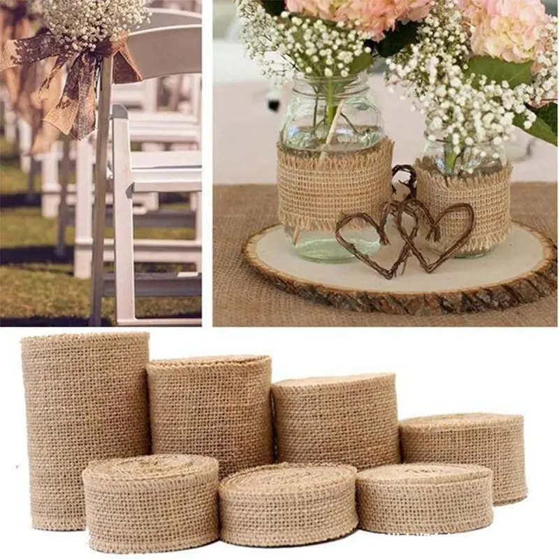 2M Natural Jute Burlap Hessian Ribbon Rolls 25/30/40/50/60/80/100mm Vintage Rustic Wedding Gift Wrapping Party Christmas Decor