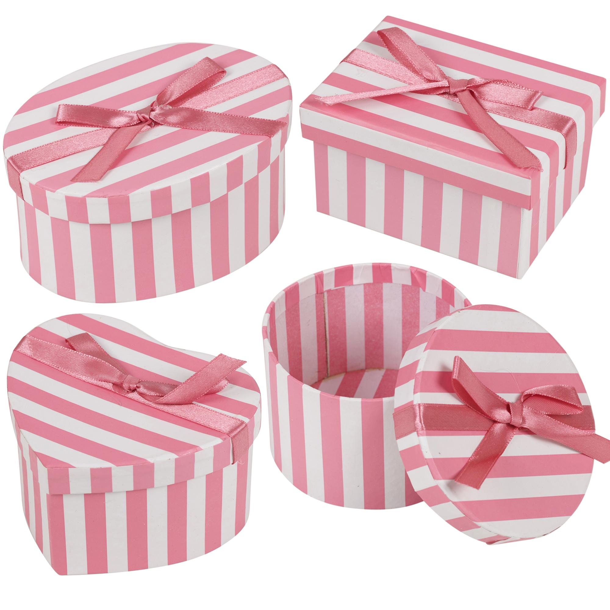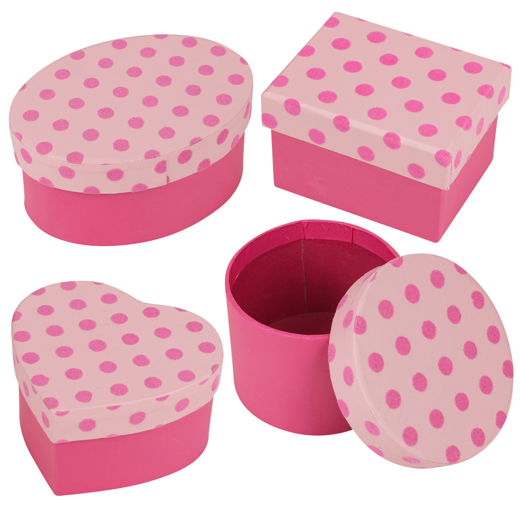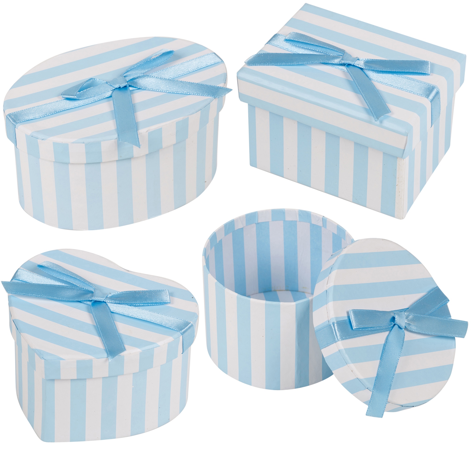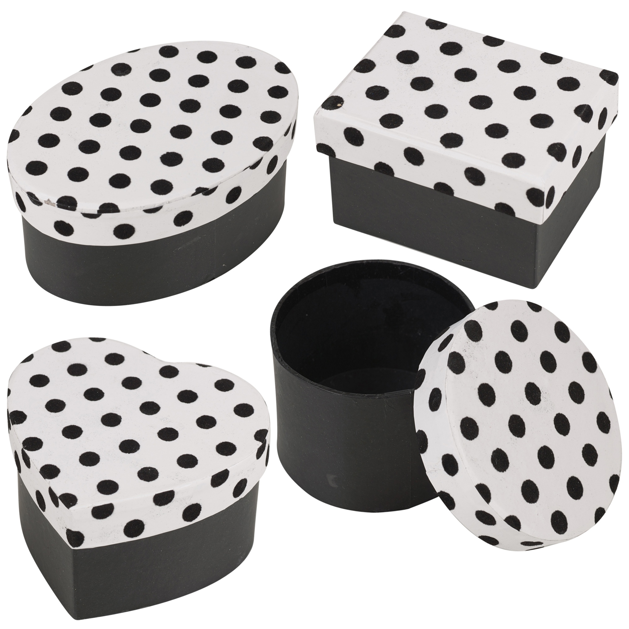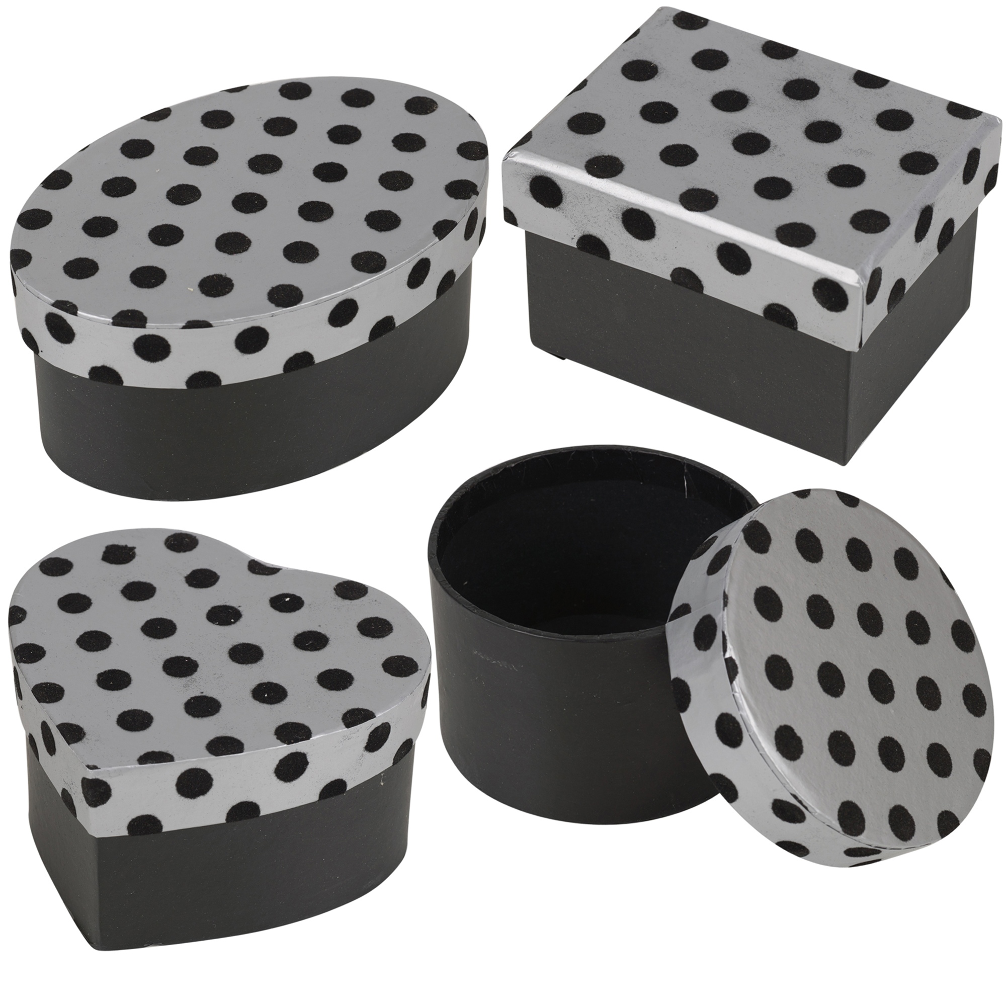 These little gift box sets come with 4 matching boxes with each set. A heart shape, rectangle, round and oval shape box are included in every set. Please choose from the drop-down menu for the style/colour of your choice.