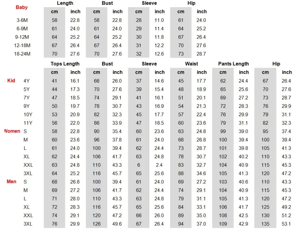 - For Moms: S, M, L, XL, XXL, XXXL