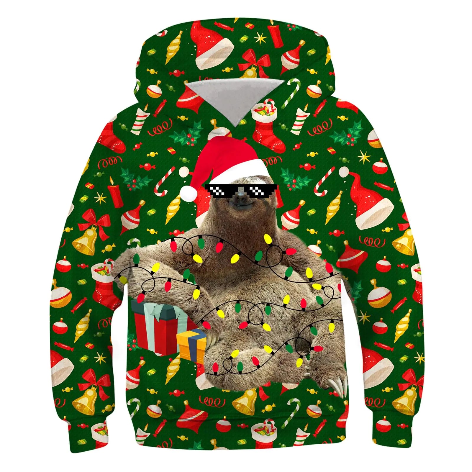ZenGents Kids Christmas Sweater for Boys Girls 2024 Ugly Xmas Green Sloth Hoodies Size 10 12 Sweatshirt Santa Holiday Party Clothes Outfits 8 9 11 Years
